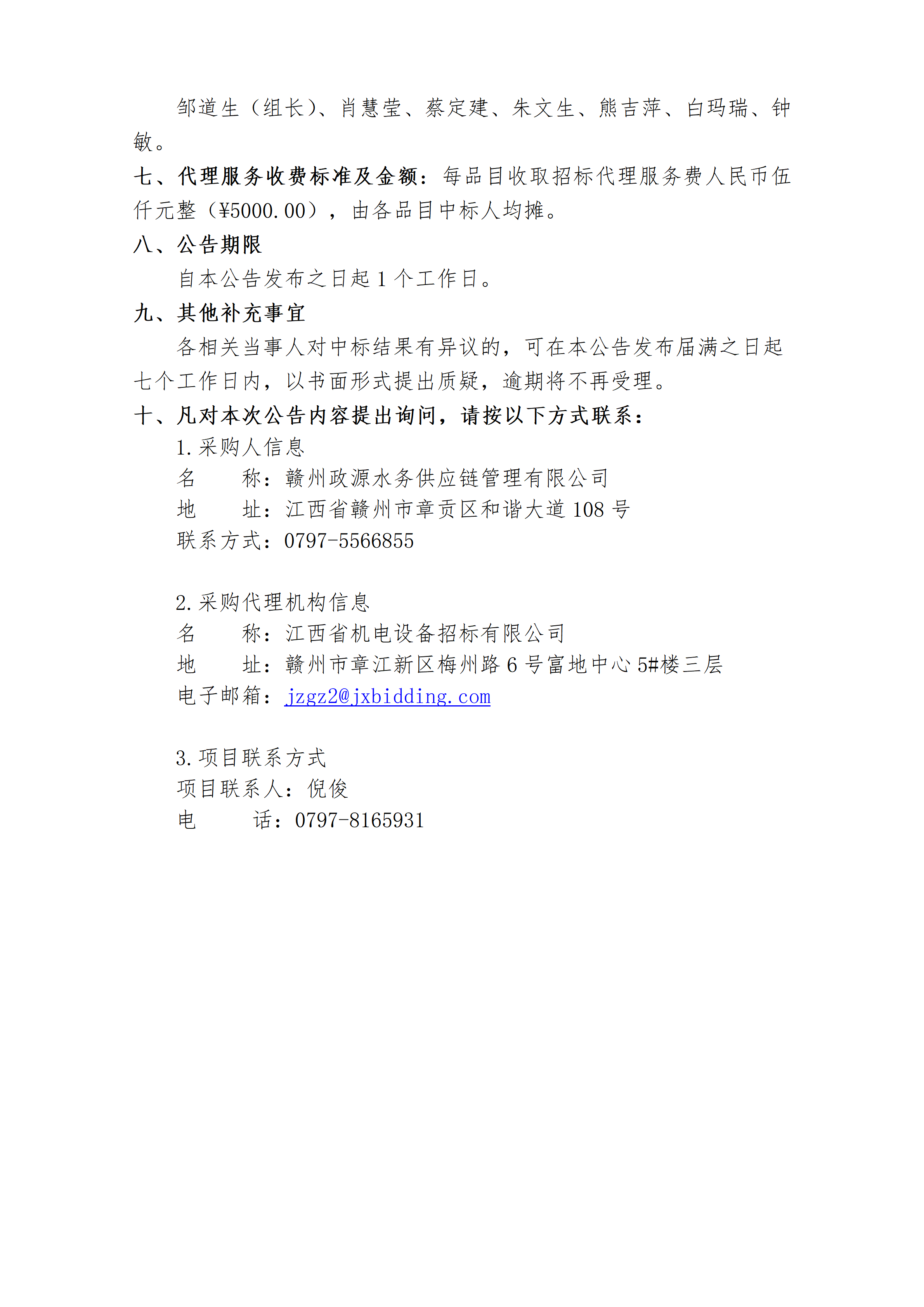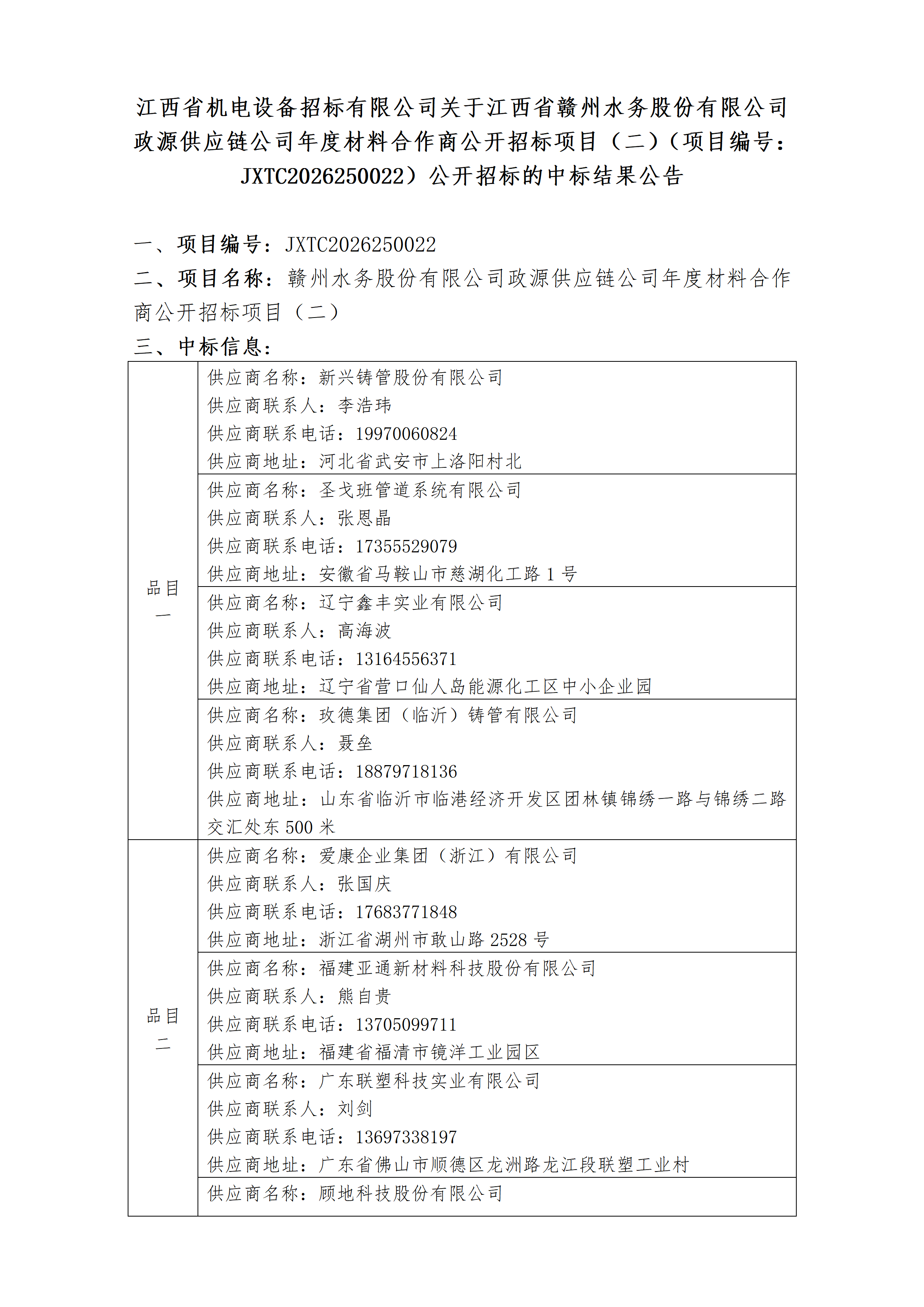 中鑫正能工程管理有限公司关于赣州水务股份有限公司赣州市中心城区“多户一表”供水改造工程年度合作材料设备供应商招标-品目二(采购编号:ZXZN2025-GZ-ZG001-2-品目二)流标公告