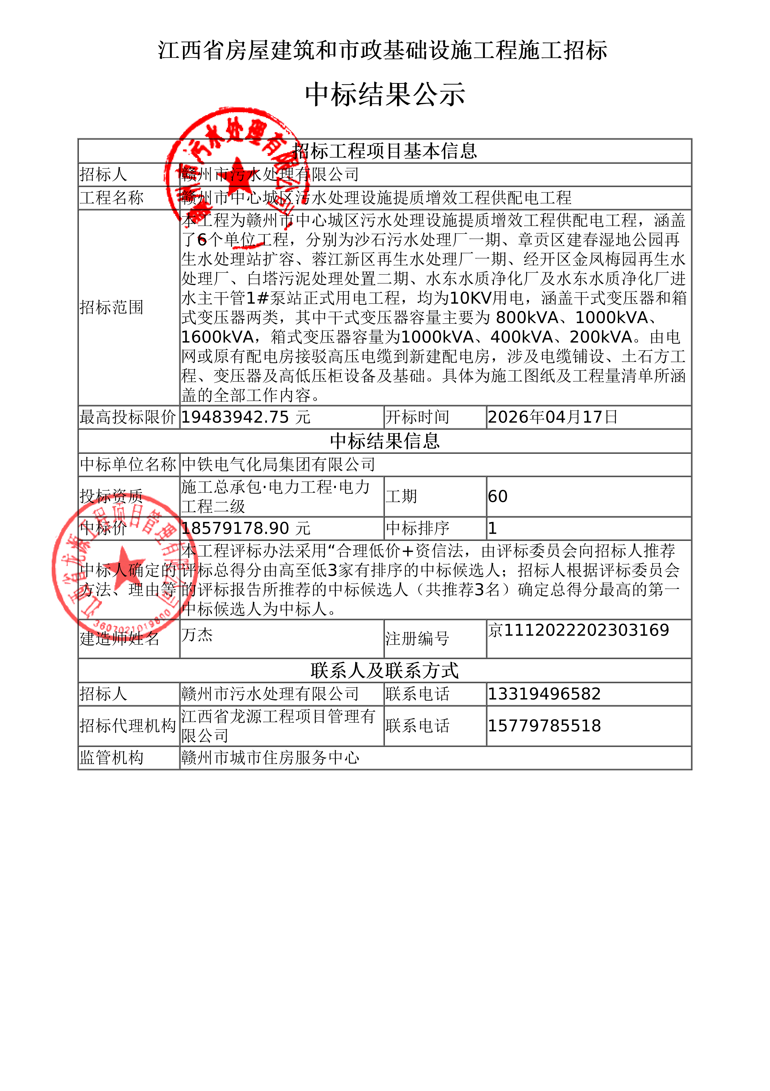 中标结果公示