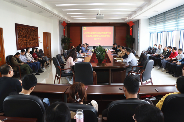 赣州市政公用集团召开2020年度中层干部述职大会暨试用期满考核测评大会4月13日,赣州市政公用集团举行2020年度中层干部述职大会暨试用期满考核测评大会。集团本部11个部门负责人依次上台,交出年度工作“答卷”。大会由集团党委委员、财务总监刘熹主持,集团在家领导班子成员及