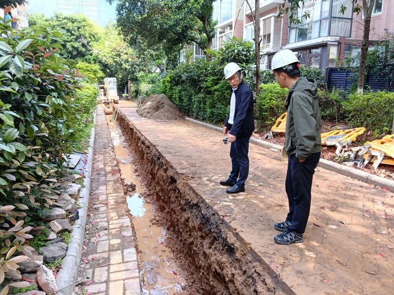 在三片区雨污分流改造项目黄金时代小区、京东路及老城区雨污分流改造项目五龙南区小区、绿海路等施工点位,范秀刚实地督导检查项目建设工作。针对现场检查发现的宣传不到位、工艺不规范、安全文明施工措施不足等问题,范秀刚现场办公并提出明确整改要求。他指出,要加强现场管理,与街道社区协同联动,对周边商铺和小区楼栋单元进行全覆盖走访宣传,争取居民对项目建设的理解与支持,最大限度降低施工对周边群众生产生活影响。要规范施工工艺,严格按照设计要求,把严工程质量关口,确保工程质量和效果,加强施工全过程闭环质量监管,确保工程质量过硬,全力打造经得起实践、人民、历史检验的精品工程、民心工程。要狠抓安全生产,全面落实安全文明施工举措,紧盯雨季天气变化,做好防雷、防内涝等工作,切实防范安全生产风险隐患,筑牢雨季安全生产防线,确保项目推进安全有序、高质高效。